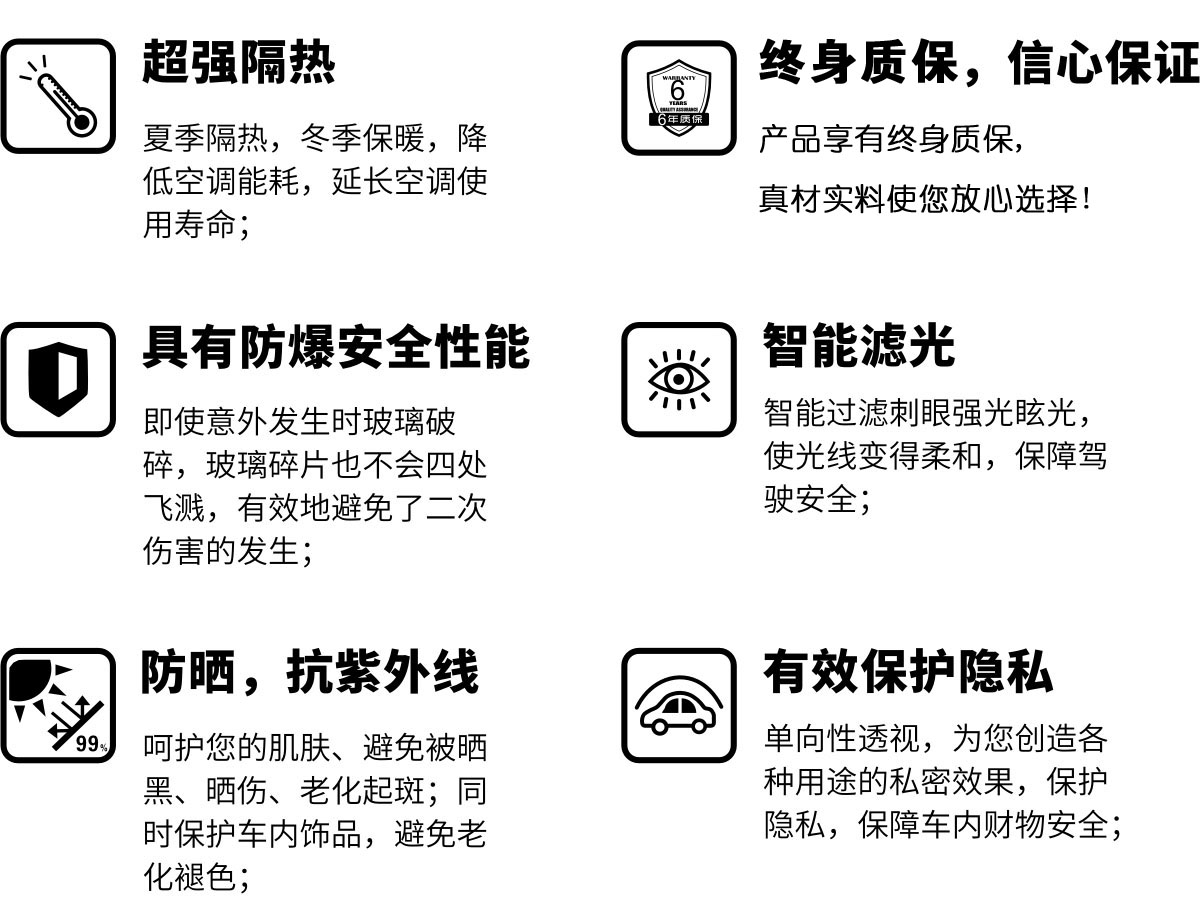 炎武汽車(chē)膜具有單向防護功能,在一定的外力下,車(chē)窗玻璃不易碎,可保護車(chē)內財產(chǎn)及人生安全。